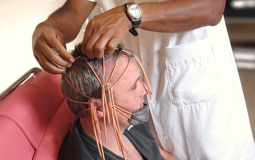 1、检查时精神不要紧张,头皮上安放接收电极,不是通电。要及时给老年人讲清楚这点,很多老人对头皮通电存恐惧心理,易产生紧张和害怕的情绪。